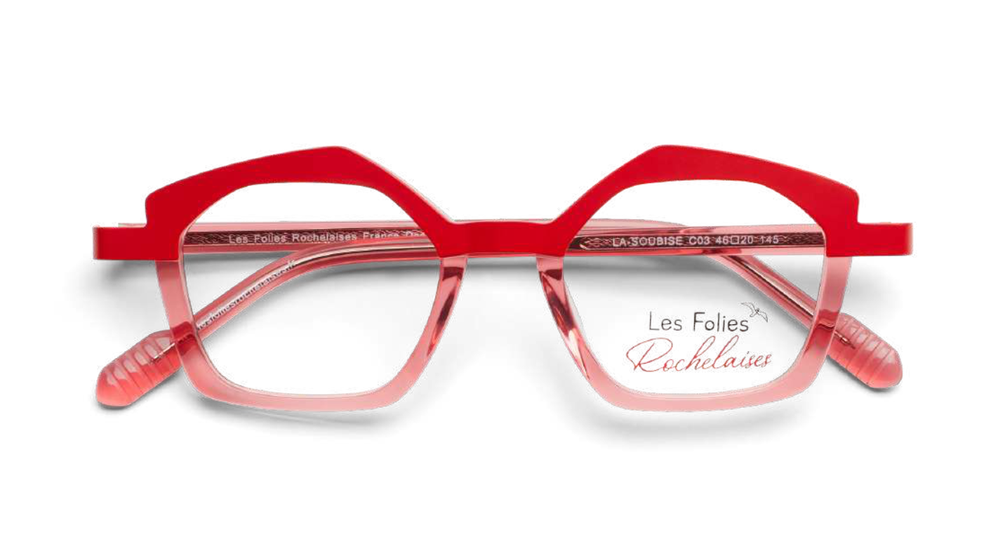 Les Folies Rochelaises : une monture femme de caractère signée GP International. Design audacieux en acétate italien pour opticiens créatifs.