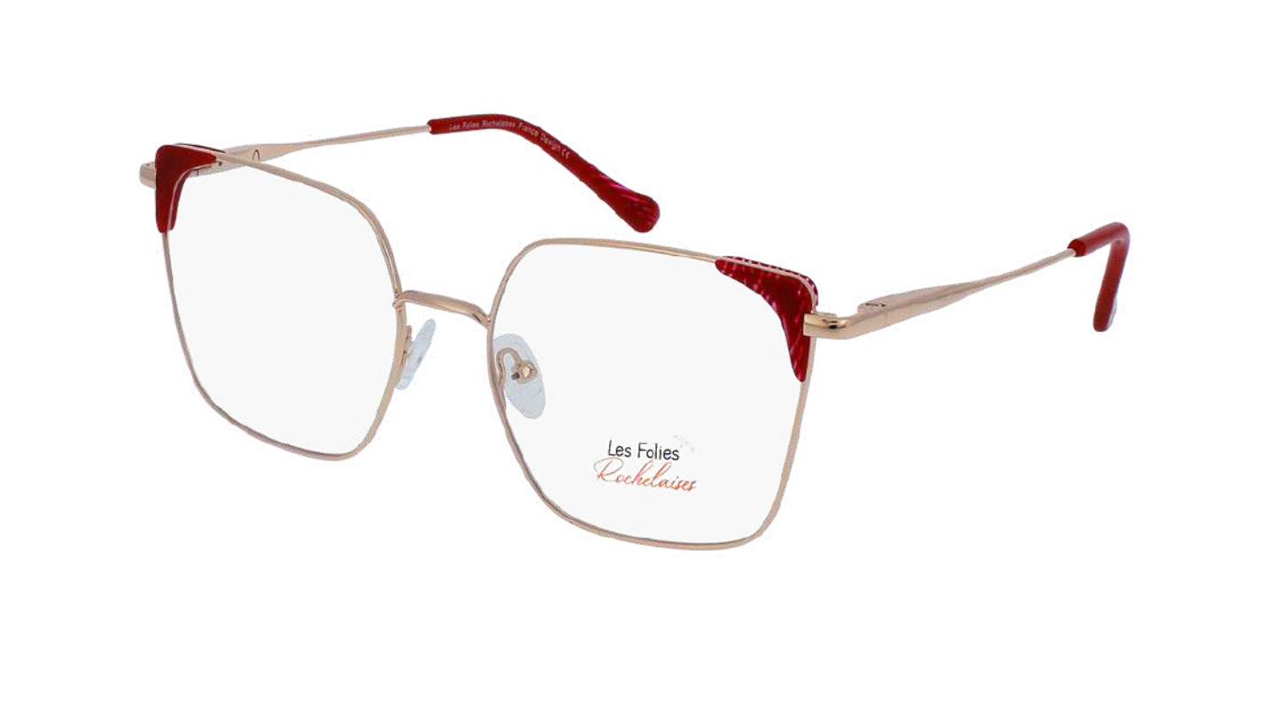 Les Folies Rochelaises : une monture femme de caractère signée GP International. Design audacieux en acétate italien pour opticiens créatifs.