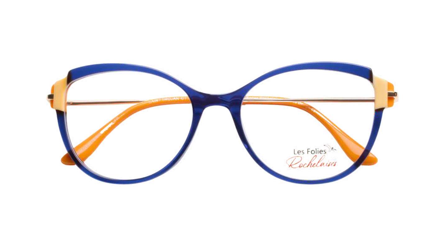 Les Folies Rochelaises : une monture femme de caractère signée GP International. Design audacieux en acétate italien pour opticiens créatifs.